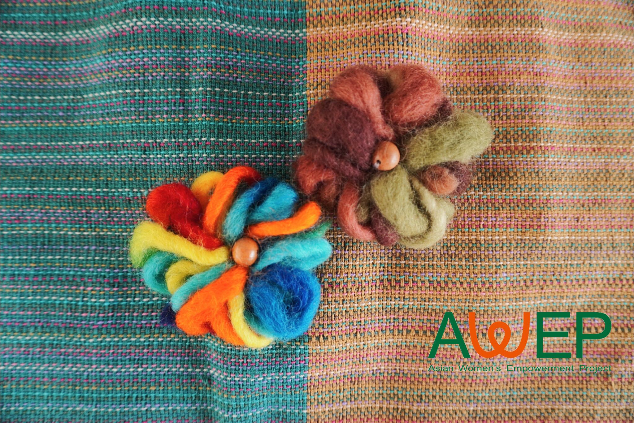 ネパール・MKSクラフトさんの、カトマンズの子育て中の女性たちが自宅で編んだブローチです。