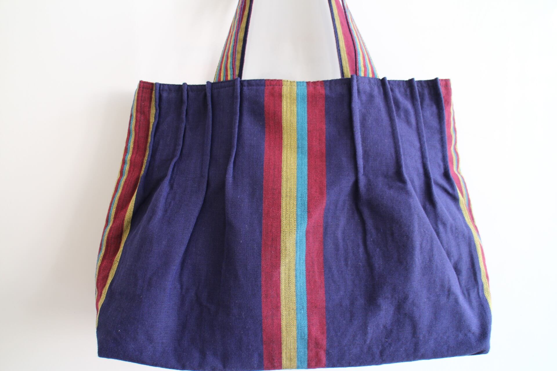 織り布タックバッグ大(紺色ストライプ) FWA18-BA10