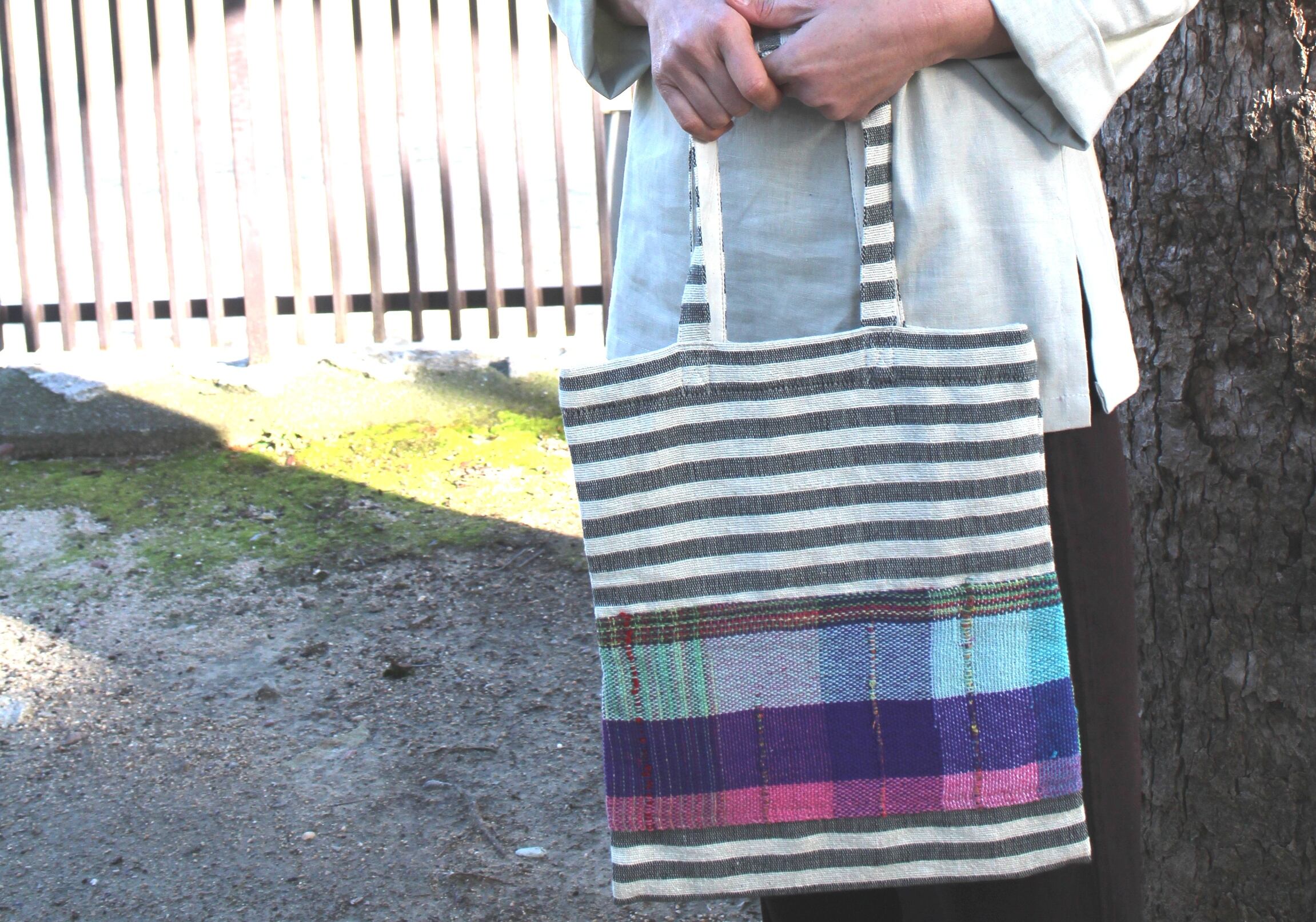 使っているさをり織りの模様によって雰囲気がかわって見える楽しいバッグです。